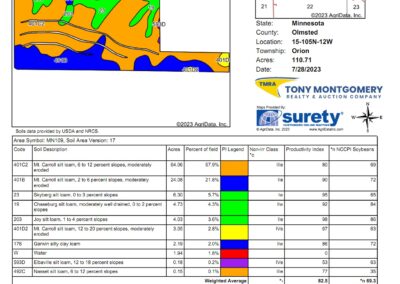 Parcel #1 – 80 +/- Acres – S1/2 NE1/4 Section 29 Elmira Township, Olmsted County. Farm offers 38.47 +/- acres tillable with a 84.2 CPI Rating. Bid Amount X 80 +/- Acres. Plus a 2% buyers fee.