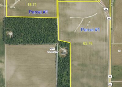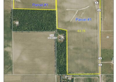 Parcel #2 – 74.23 +/- Acre Farm with 68.89 +/- tillable Acres sold for $11,278.50 per acre. $12,152.75 per Tillable Acre.